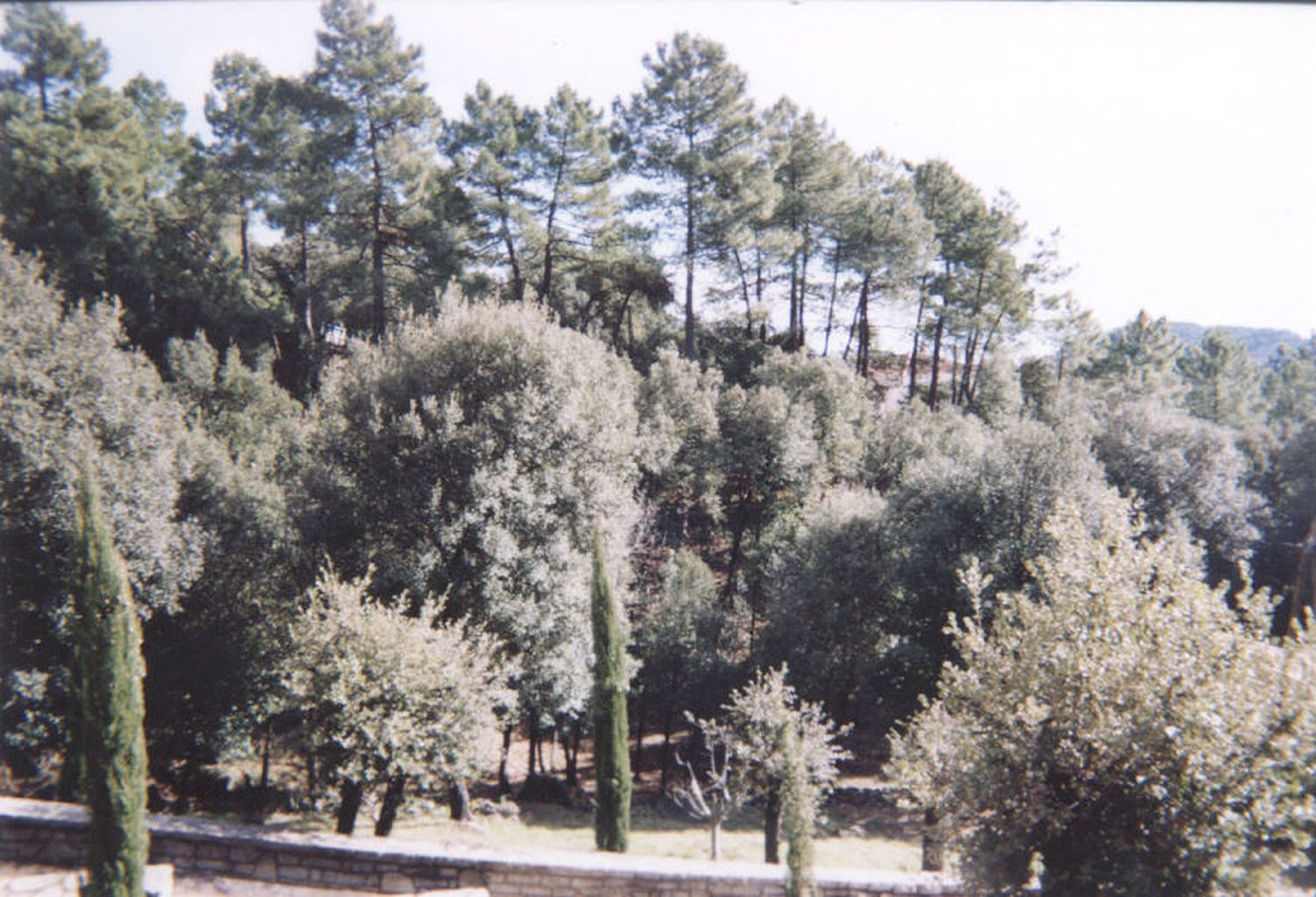 Série de photos sur le terrain de 2000m², très boisé, ce qui fait que l’on ne le voit jamais en entier. Il s’agit d’un parcelle plutôt étroite et donc toute en longueur, peuplée de chênes et de quelques grands pins, dont l’un fait près de 30 mètres de haut.